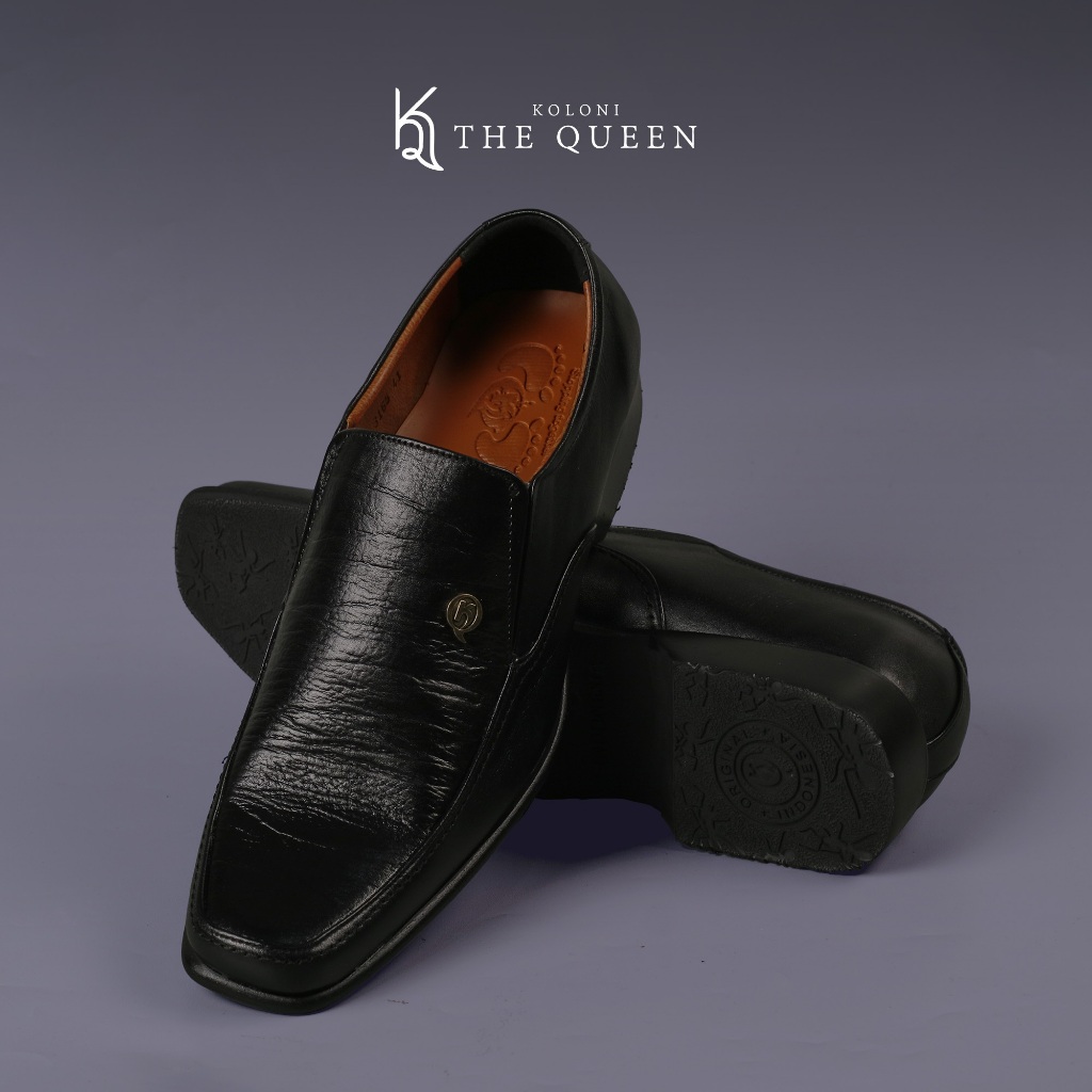 [Mall] KQ Indonesia K-3165 Sepatu Pantofel Pria Formal Kerja Kantor Bahan Kulit Asli Original - Black
