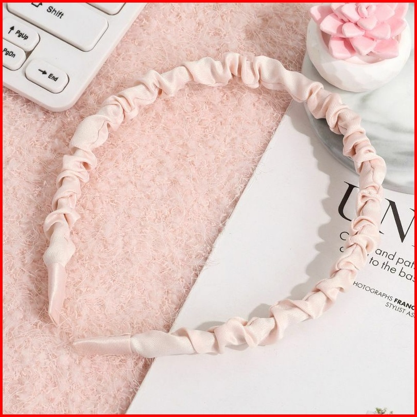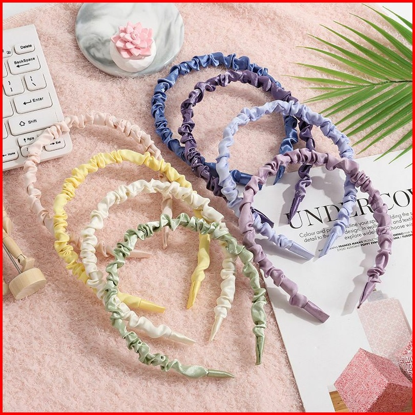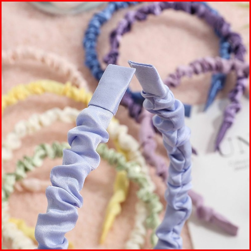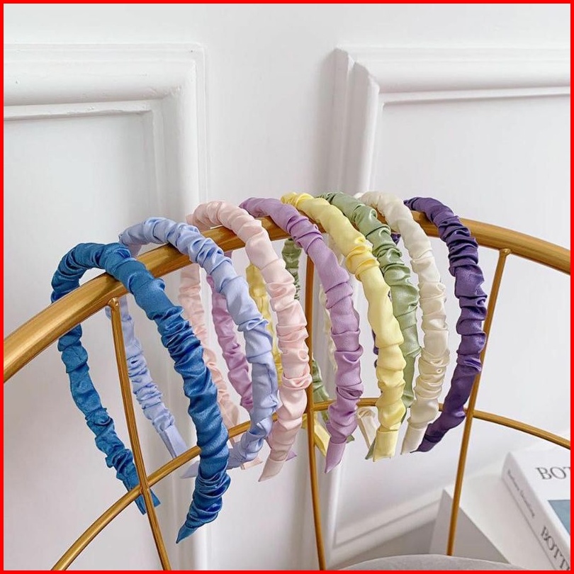 Bando Korea Kerut Scrunchie Headband Warna Pastel