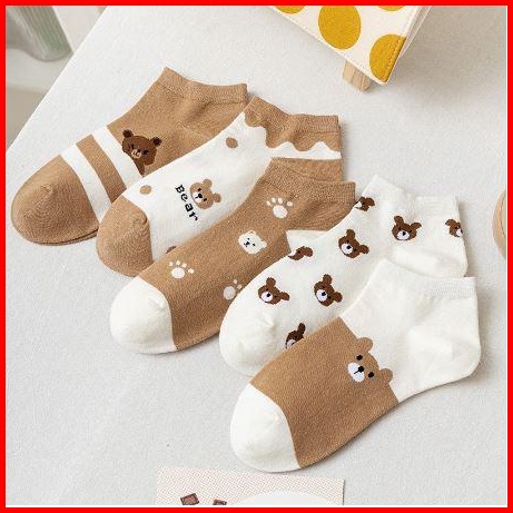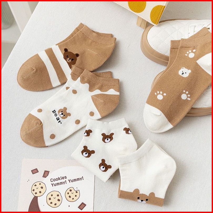 Store.1234 Kaos Kaki Pria Wanita Motif Beruang Coklat Choco Bear Kaos Kaki Pendek Bear Socks Korean Fashion.