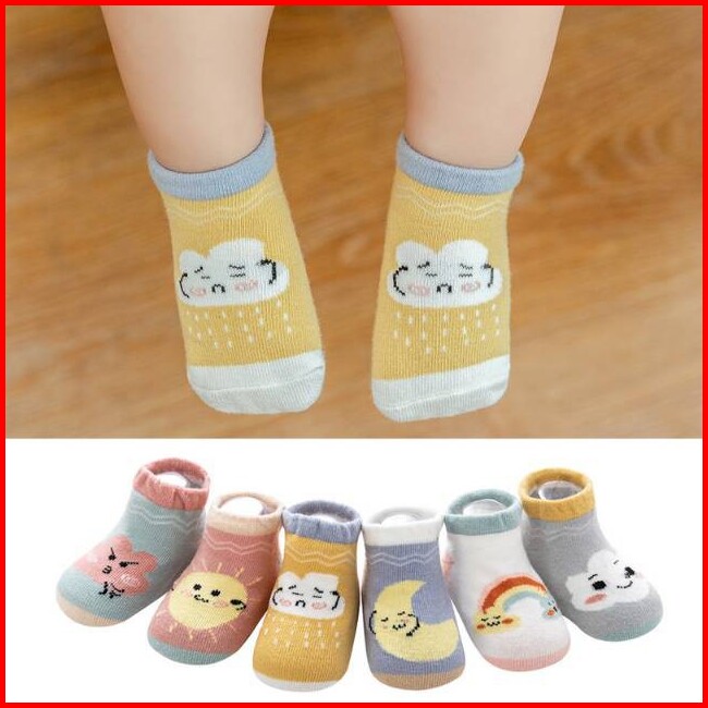 Kaos Kaki Sepatu Bayi Gambar Awan Bahan Katun Breathable Nyaman Di Pakai Import.