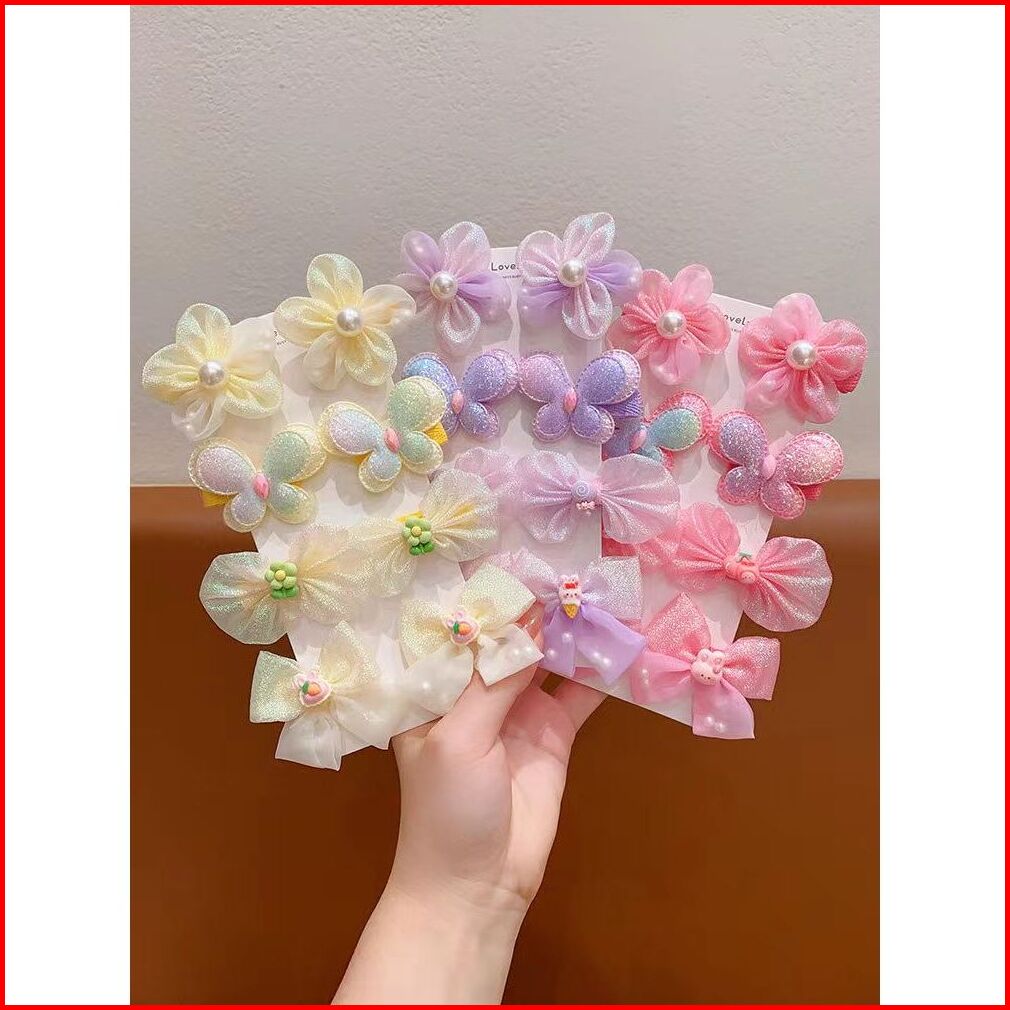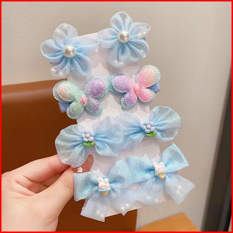 Hello Girl F422 Set Jepit Rambut Anak Perempuan 8pcs Model Bunga Kupu Terbaru