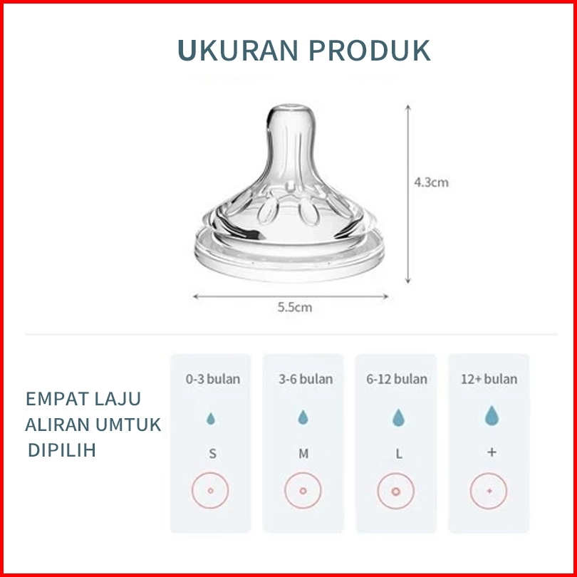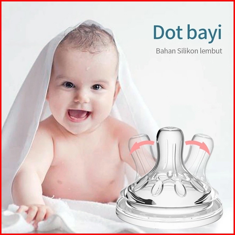 Koi Store Puting Dot Bayi Bahan Silikon Leher Lebar Dot Botol Bayi Susu Nipple Peristaltik
