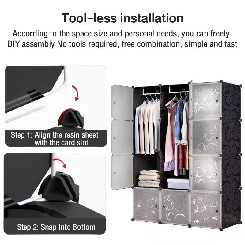 HOhome Lemari Pakaian plastik Lemari Pakaian Anak Termurah Kabinet estetika modern Lemari pakaian DIY multi-pintu