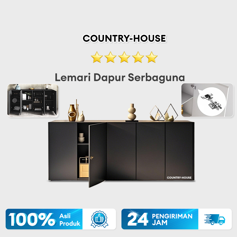 COUNTRY-HOUSE Lemari Dapur Serbaguna 90CM Hitam & Putih Lemari L Susun Lemari Pakaian Kayu Lemari Penyimpanan
