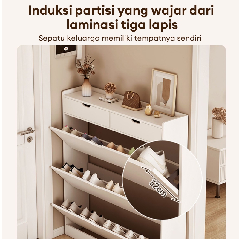 COUNTRY-HOUSE Lemari Sepatu Rak Sepatu Rak Sepatu Susun Tertutup Rak Sepatu Kayu