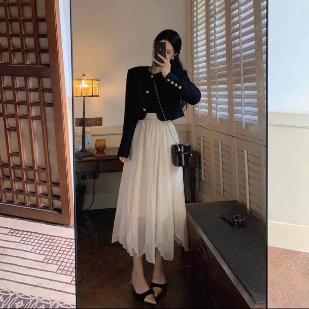 Olivia Buttons Crop Tweed Blazer / er Blazer Premium Wanita B3794