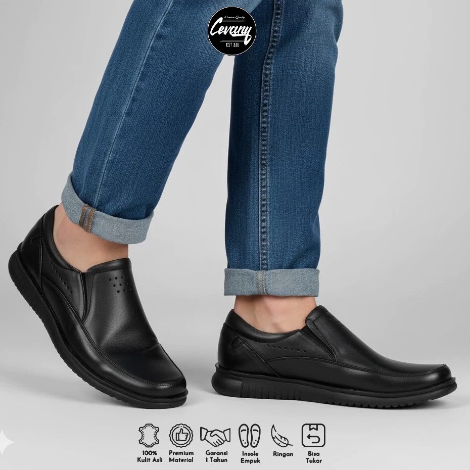 [Mall] Cevany Kenji Sepatu Pantofel Pria Slop Formal Kulit Asli Hitam Coklat Size 38-43 Premium