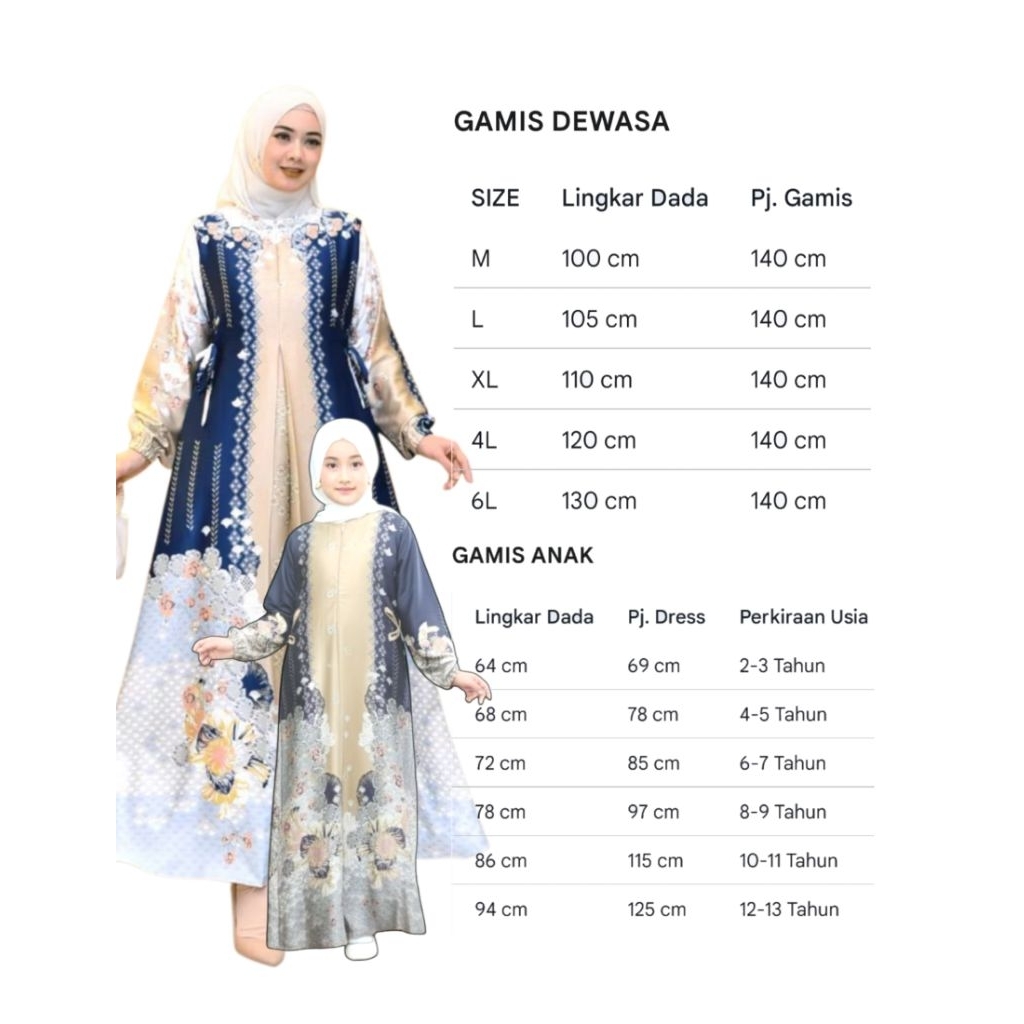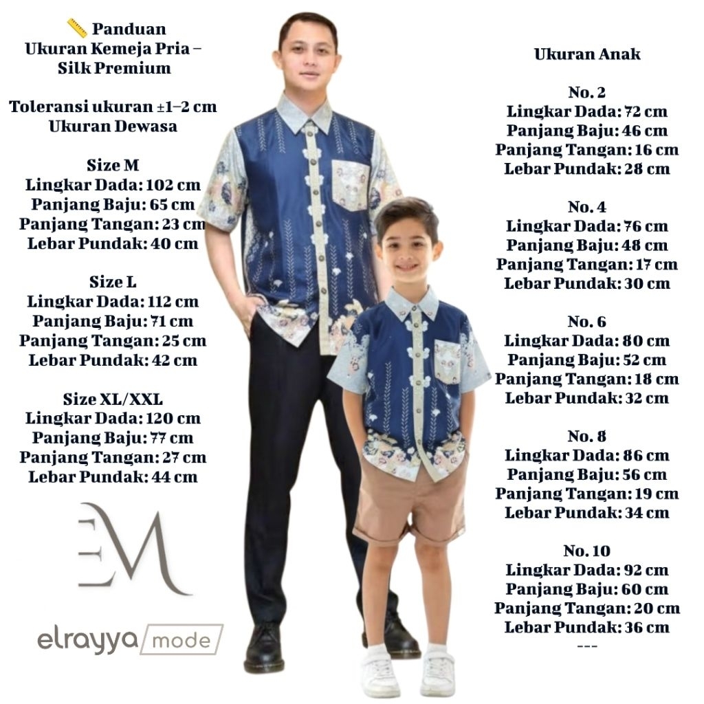 No 1(kemeja anak), No 2(Kemeja anak), No 4(kemeja anak), No 6(Kemeja anak), No 8(kemeja anak), No 10(Kemeja anak), M (Kmj Ayah), L (kmj Ayah), XL (kmj Ayah), No 2(Anak gamis)