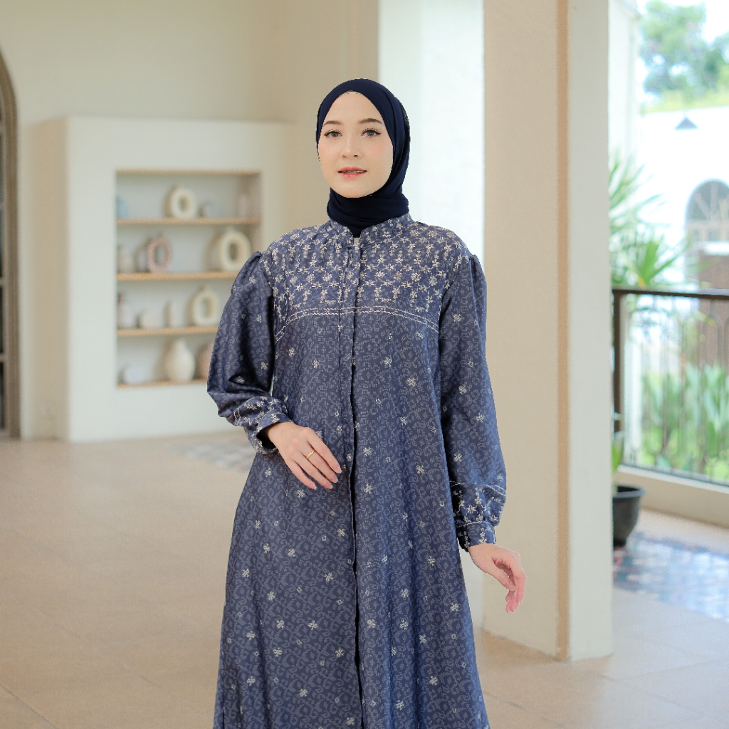 BAJU LEBARAN 2075 GAMIS COUPLE KELUARGA HAGYA NAVY BY BABY MALIKA | SET GAMIS KOKO TERBARU LEBARAN 2026