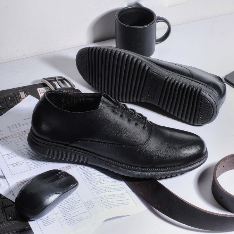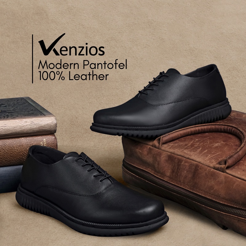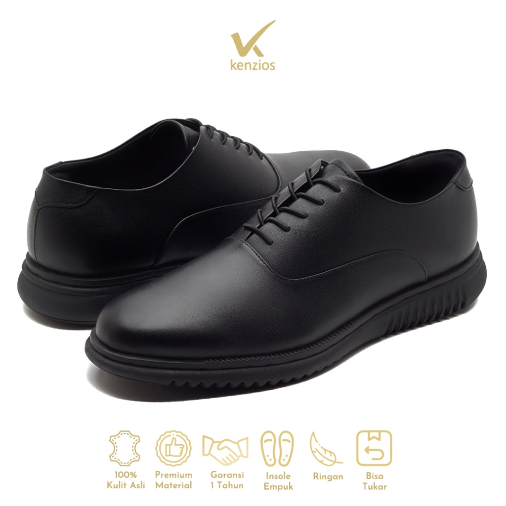 [Mall] Kenzios London 2.0 Sepatu Formal Pria Pantofel Kulit Asli Full Black Series Elegan