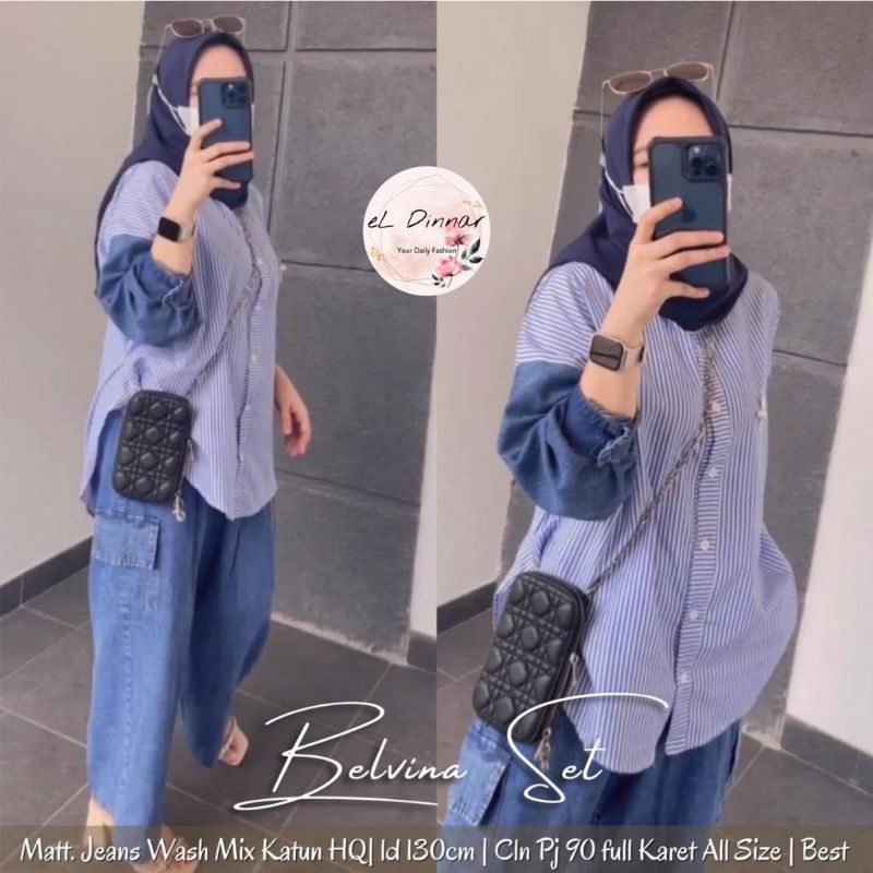 Ready Belvina Set Jeans || Setelan Celana Jeans Wanita Sporty