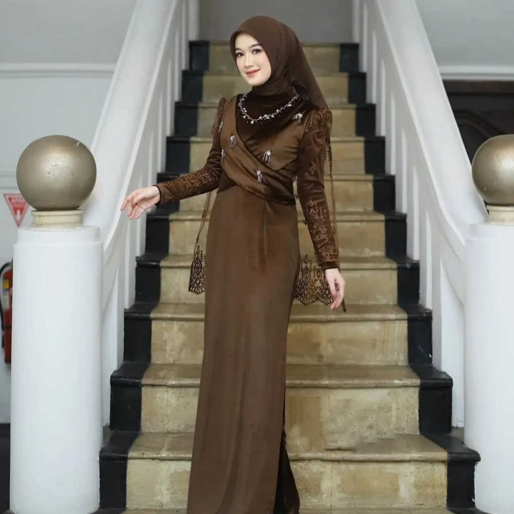 Dress Wanita Maria Velvet Gamis Lebaran 2026 el Gamis Terbaru Baju Kondangan Kekinian