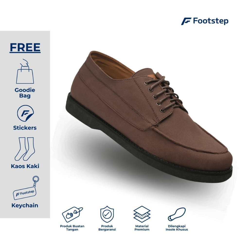 [Mall] Footstep Footwear Hugo Sepatu Casual Pria Oxford Derby Formal Santai - Darkbrown