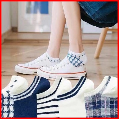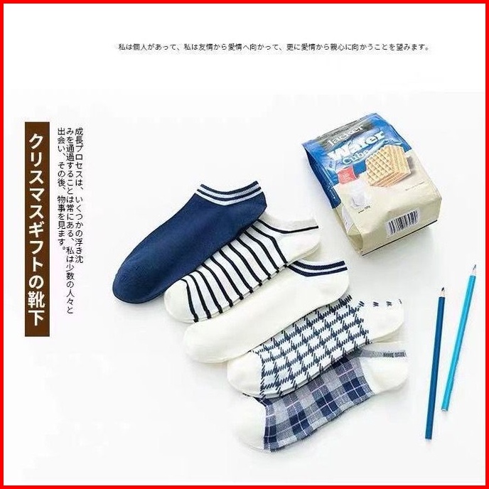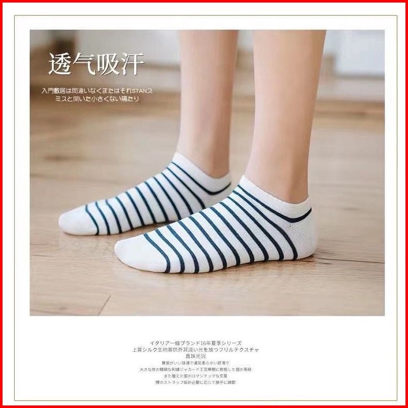 Store.1234 Kaos Kaki Pria Wanita Denim Edition Kaos Kaki Motif Garis Kaos Kaki Pendek Japanese Style Ankle Socks.