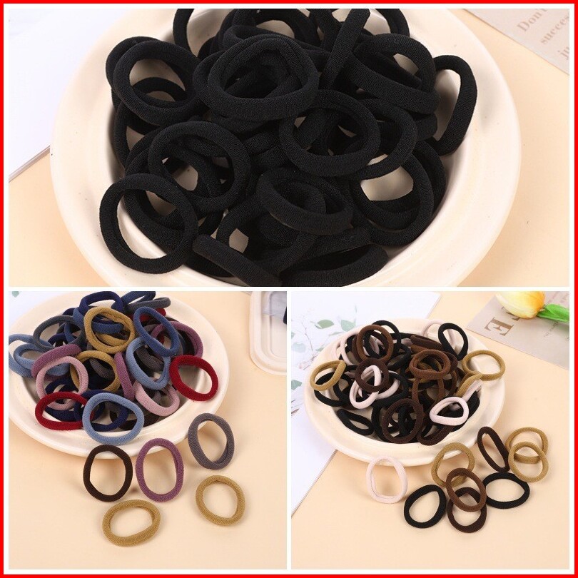 Store.1234 Ikat Rambut Anak Elastis Kunciran Wanita Motif Polos Gaya Korea Ikat Rambut Donut Mini.