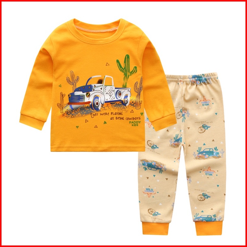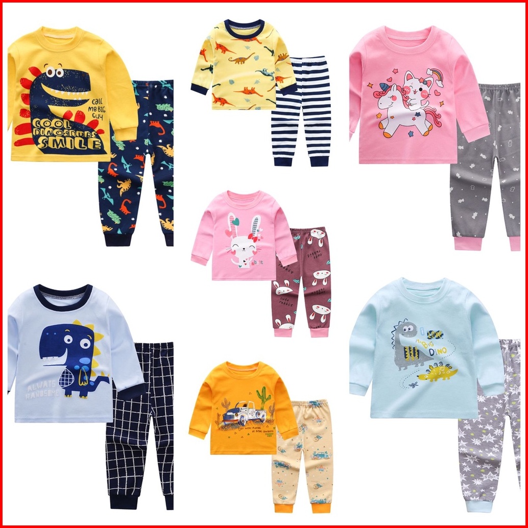 Store.1234 0-3 Tahun Piyama Setelan Anak Motif Cartoon Unik Bahan Kaos Lengan Celana Panjang Berkualitas Import