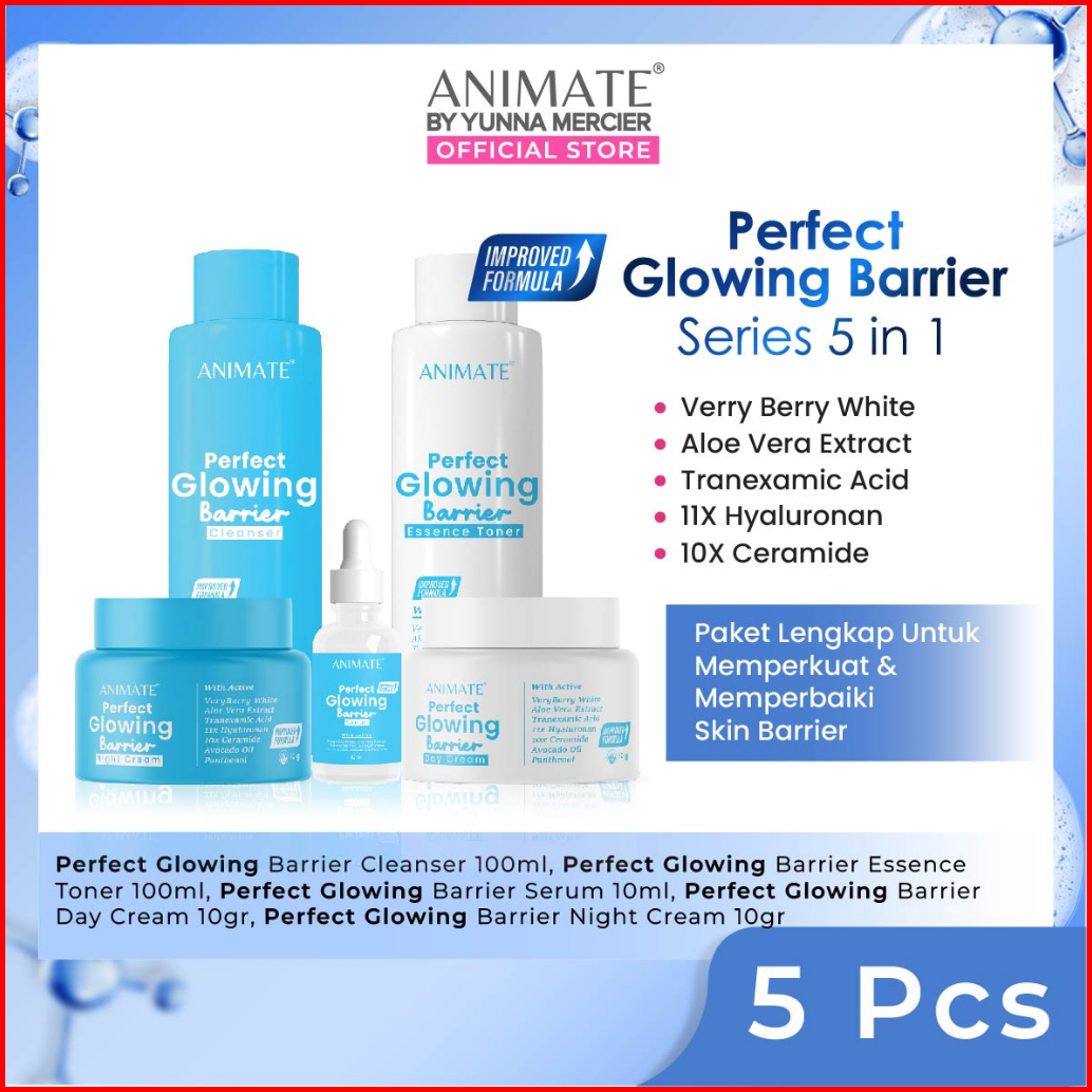 Paket Animate Whitening Series 5in1 Glowing Barrier Series 5in1 Acne Solution Series 5in1 - Paket Skincare Original Bpom