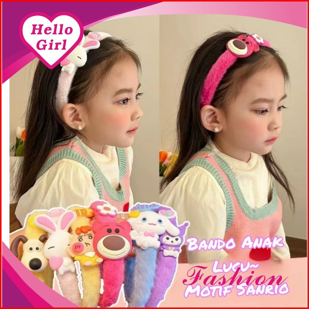 Hello Girl B105 Bando Anak Bulu Karakter Gaya Korea Import