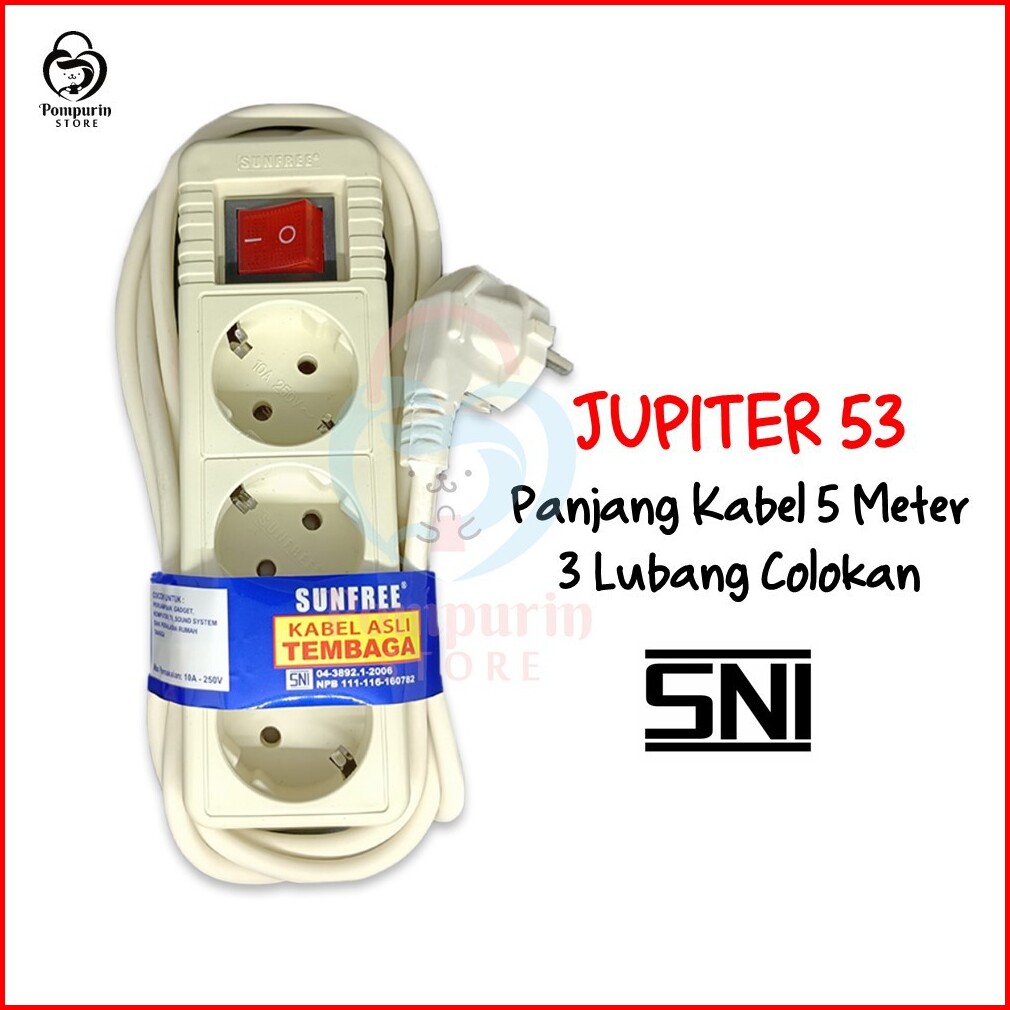 Sunfree Jupiter 1 5m 3m 5m - 3 Lubang 5 Lubang Colokan Stop Kontak Saklar