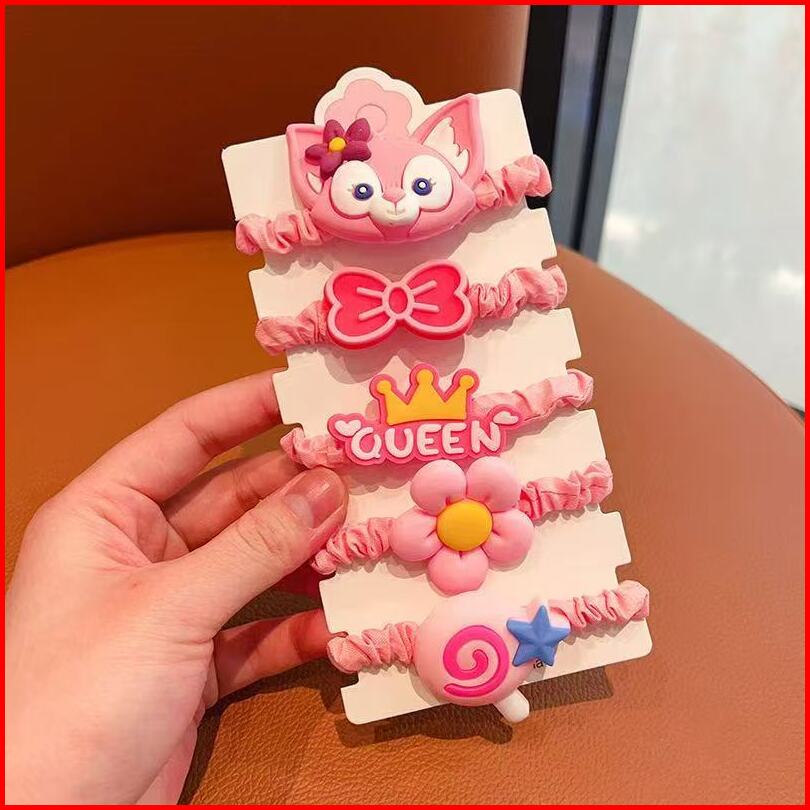 Hello Girl F131 Ikat Rambut Isi 5pcs Motif Boneka Kartun Terbaru