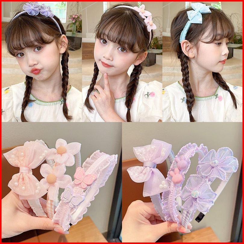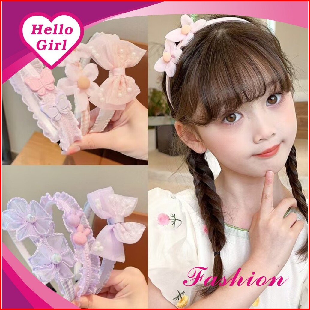 Hello Girl B120 Bando Anak Motif Pita Bunga Mutiara Gaya Korea Import