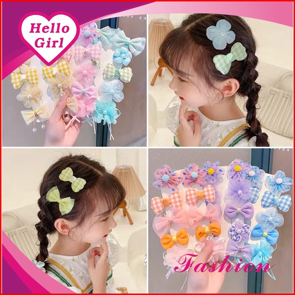 Hello Girl F132 10pcs Set Jepit Rambut Anak Motif Bunga Pita Gaya Korea Import
