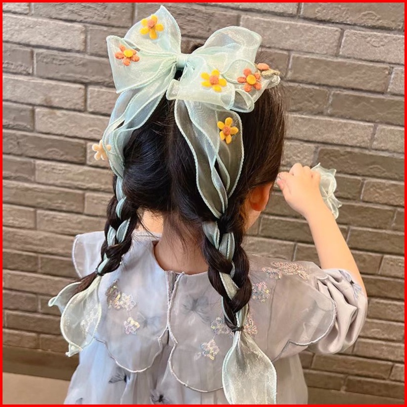Hello Girl F149 Jepit Rambut Wanita Bentuk Bunga Pita Panjang Import