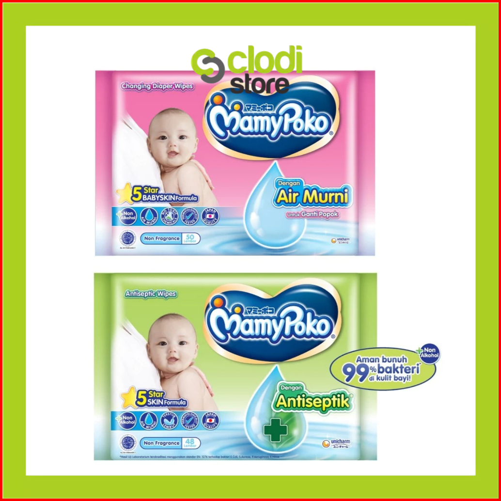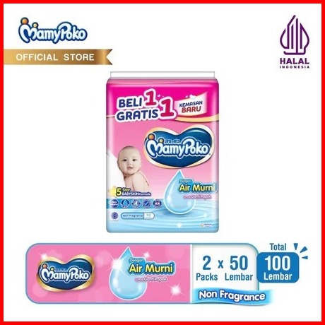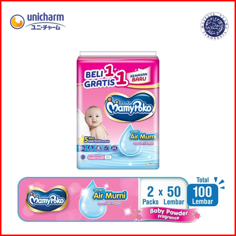 Mamypoko Wipes Tisu Basah 2x 50 Sheest Non Fragrance Baby Powder Fragrance Wipes Tisu Basah