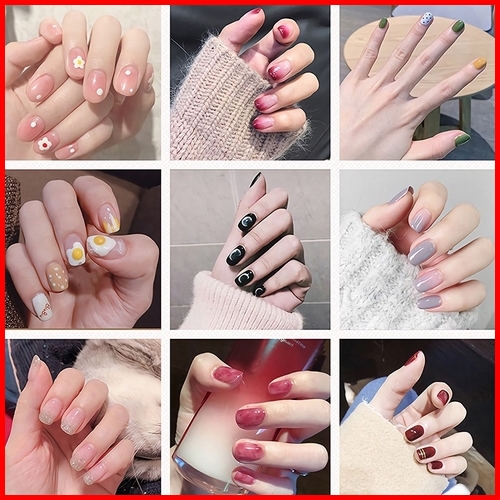 Berbagai Gaya Dikirim Secara Acak 24 Pcs Kuku Palsu Dan Lem Fake Nail Art 3d Stiker Kuku Tahan Air