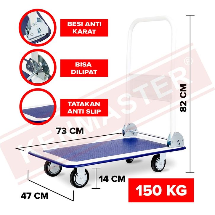 Grosir Kenmaster Hand Truck 150 / 300 KG Besi Roda Nylon - Troli Barang - Troli Lipat Dorong Biru Keren