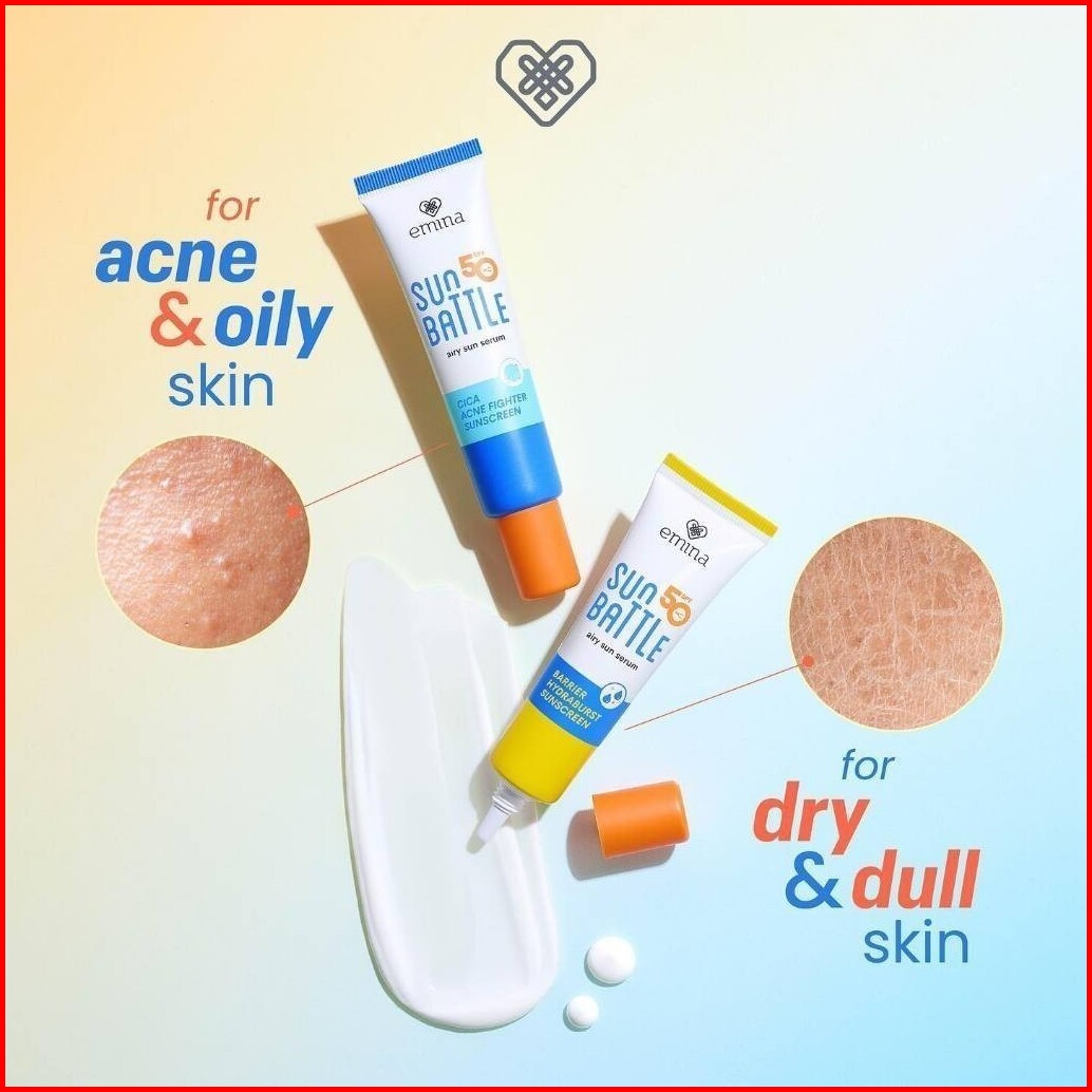Emina Max Airy Protection - Duo Sun Battle Spf 50 Pa Barrier Hydraburst Cica Acne Fighter 30 Ml Tnt Beauty Shop