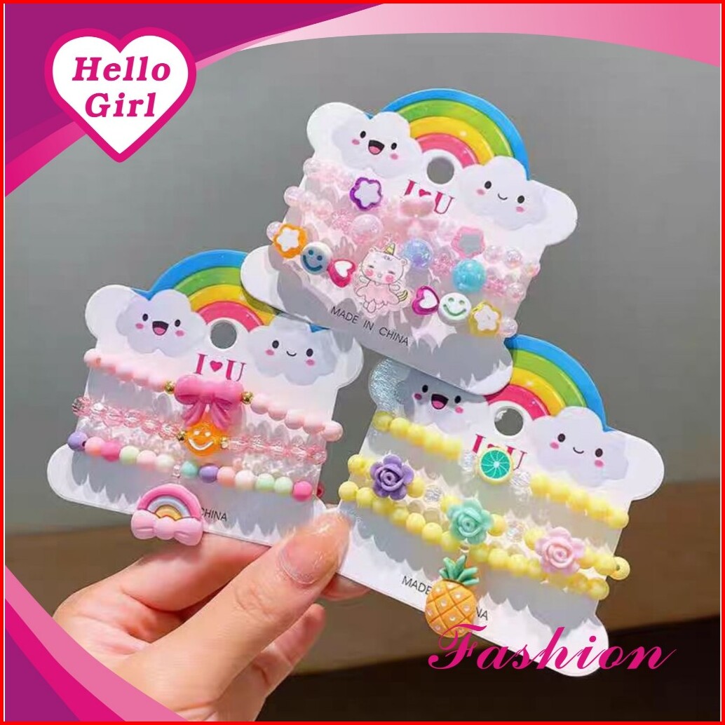 Hello Girl G21 Gelang Anak Manik Manik Warna Warni 3 In 1 Gelang Lucu Gaya Korea Import
