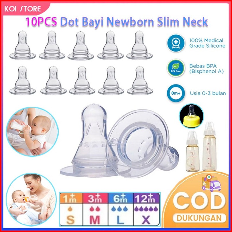 Koi Store 10pcs Dot Bayi Silikon Nipple Bayi Newborn Slim Neck Silikon Dot Desain Anti Kolik