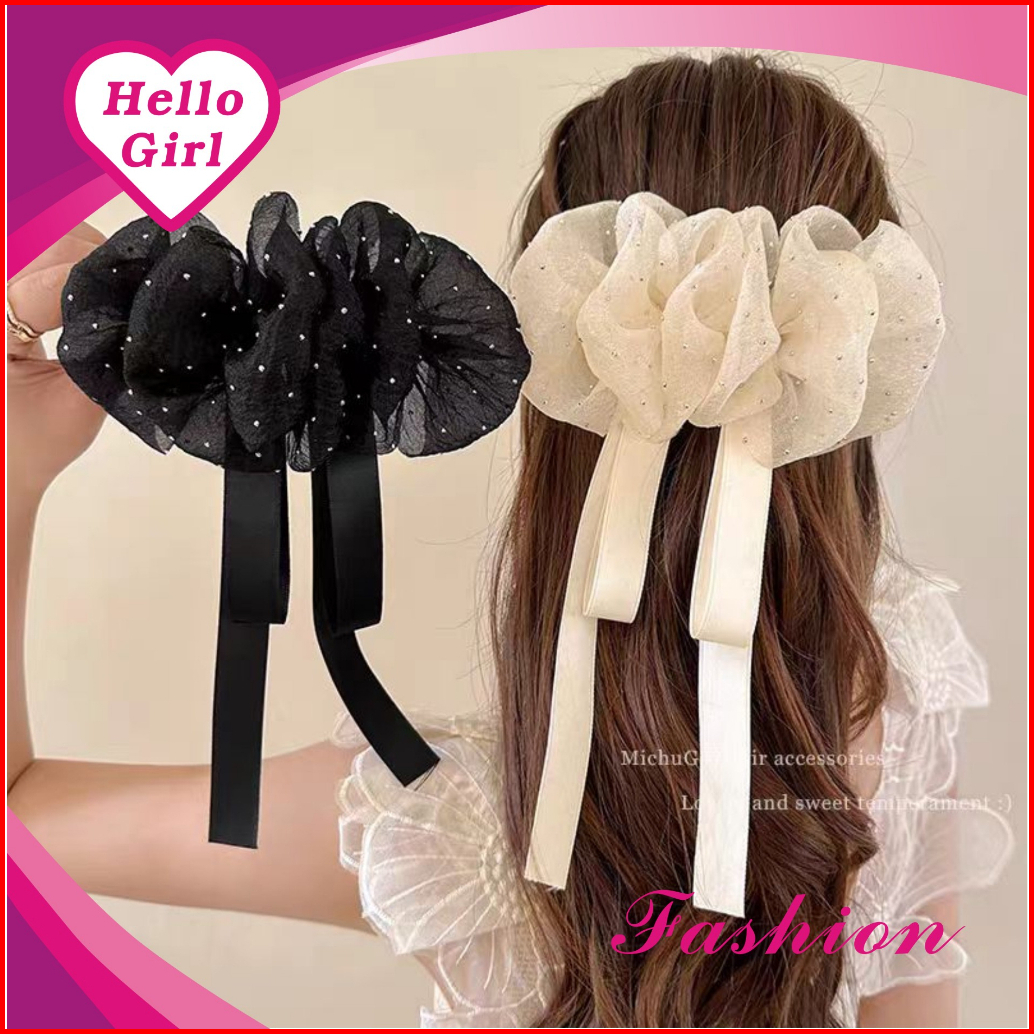 Hello Girl F272 Jepit Rambut Wanita Pita Panjang Motif Polkadot Gaya Korea Import
