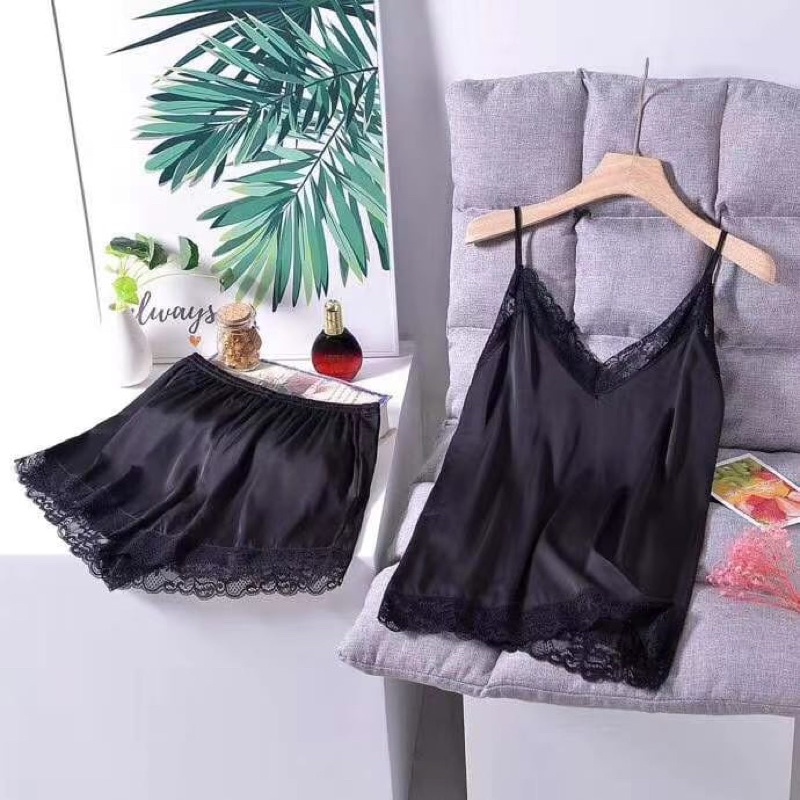 Setelan Piyama Baju Tidur Wanita Camisole Silk Satin 085 Polos Elegan Adem Silky Premium VelvetAvenu