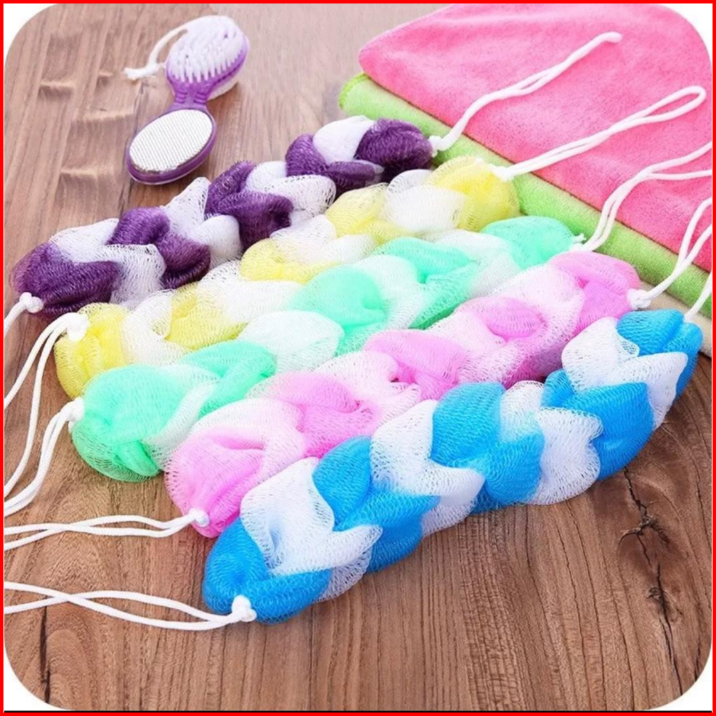 Spon Jaring Mandi Spiral Panjang Spons Mandi Kepang Bahan Nilon Panjang