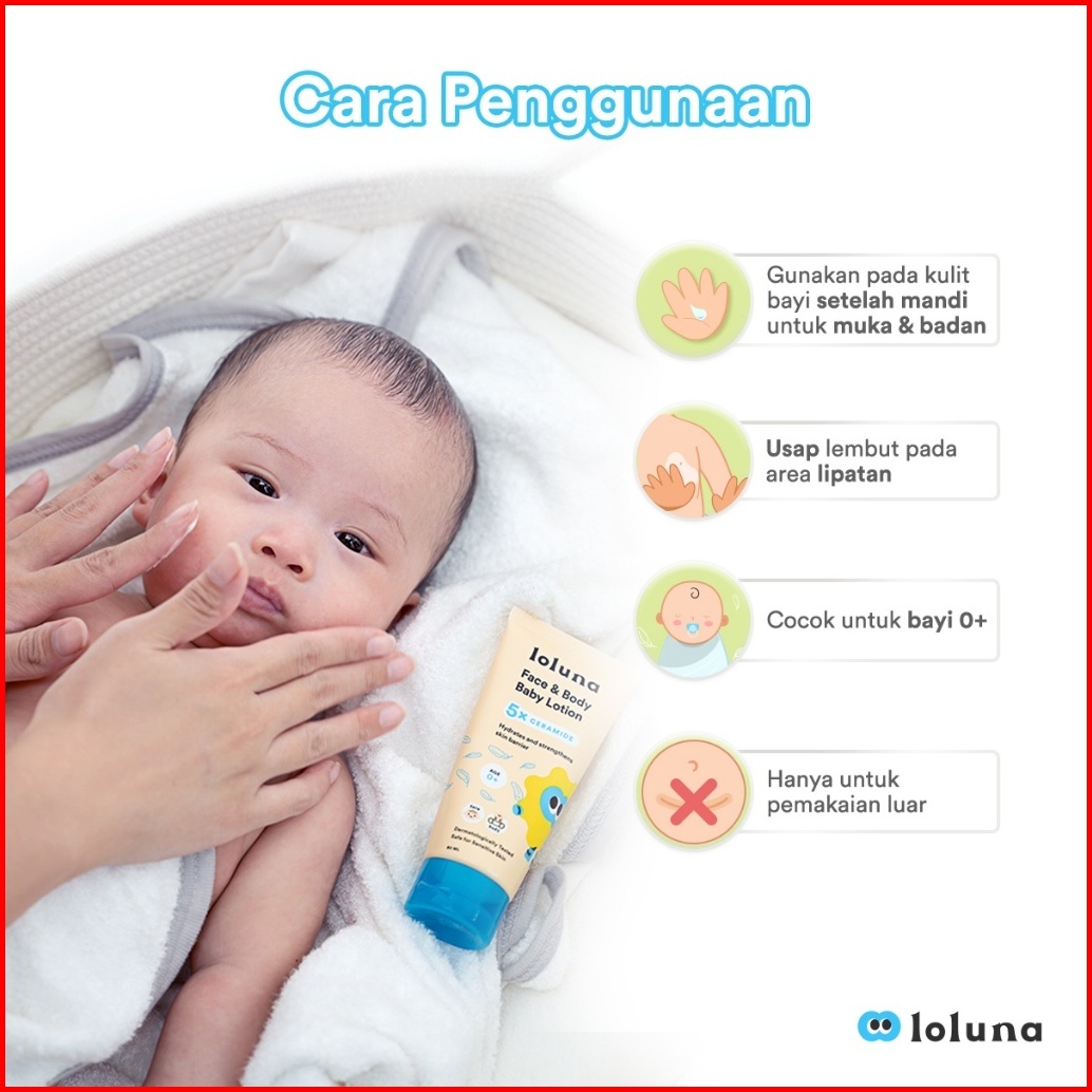 Loluna Face Body Baby Lotion 80ml 5x Ceramide Lotion Krim Muka Badan Bayi Anak Krim Untuk Newborn