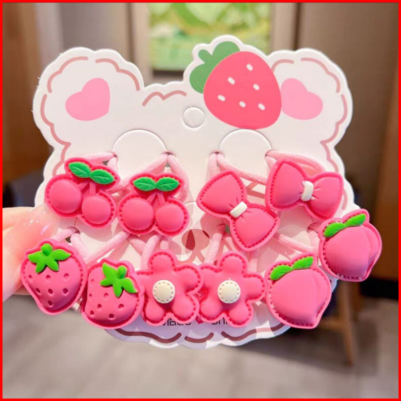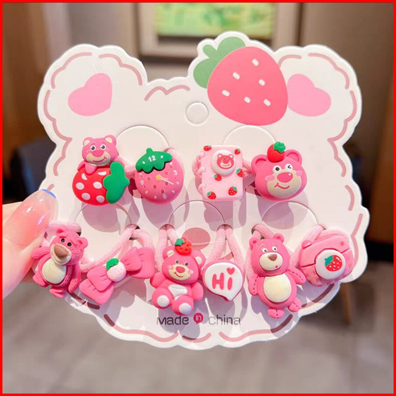 Hello Girl F229 Ikat Rambut Anak Perempuan Motif Beruang Strawberry Gaya Korea Import