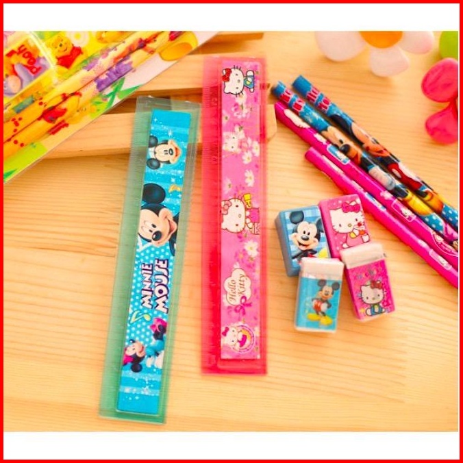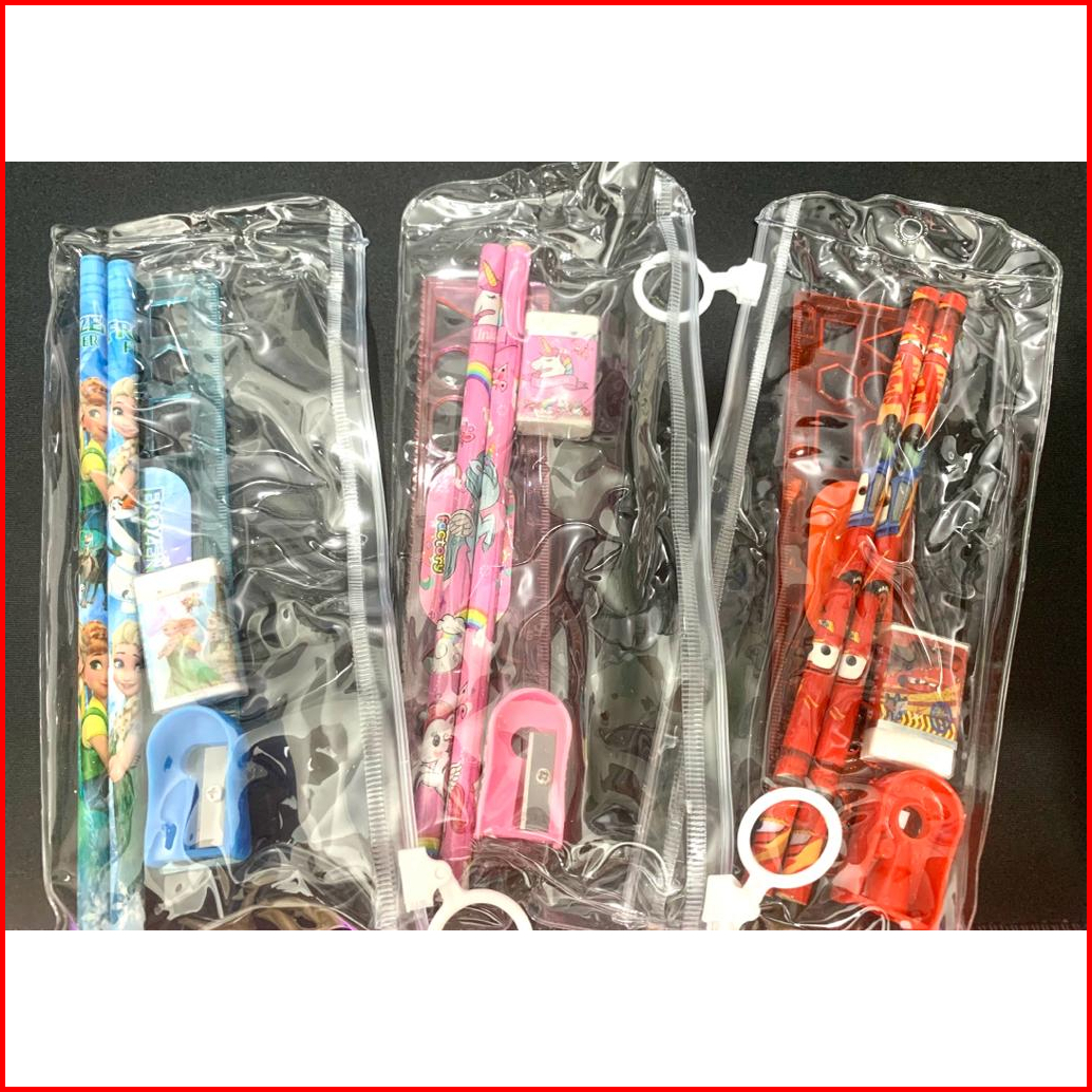 Kemasan Pouch Set Alat Tulis Sekolah 5 In 1 Karakter Lucu Mini Stationery Set Karakter Paket Pensil Penghapus Rautan ...