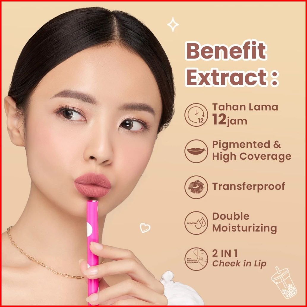 Hanasui Mattedorable Lip Cream Boba Velvet Matte Finish Pigmented Double Moisturizing