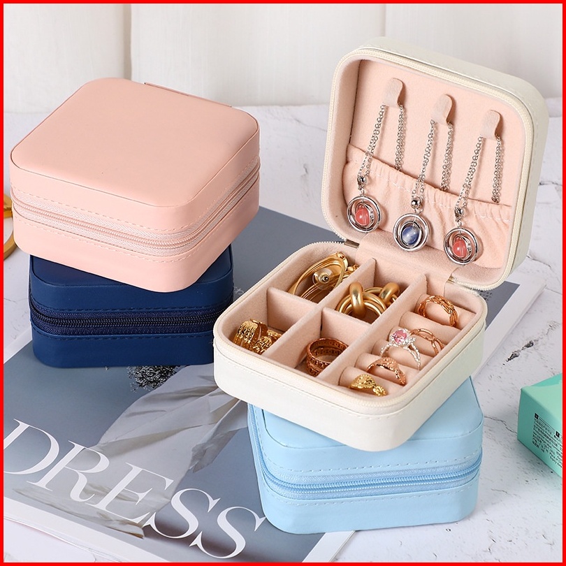 Kotak Mewah Jewelry Box Tempat Penyimpanan Cincin Kalung Anting Travel Size