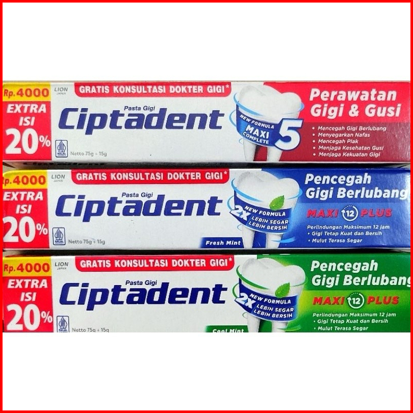 Ciptadent Pasta Gigi 75 15 Gr Maxi Plus Complete Fresh Mint Cool Perawatan Mulut Gusi Pencegah Gigi Berlubang Penyegar M