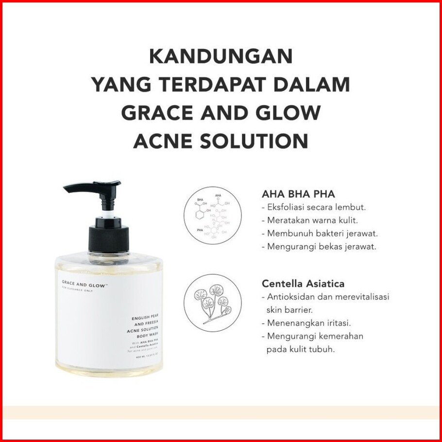 Grace And Glow English Pear And Freesia Anti Acne Solution Body Wash - Sabun Mandi Tnt Beauty Shop