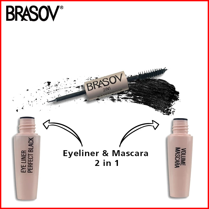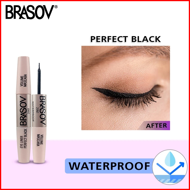 Brasov Mascara Black Waterproof Tahan Air Mascara Black 2in1 Eyeliner Mascara