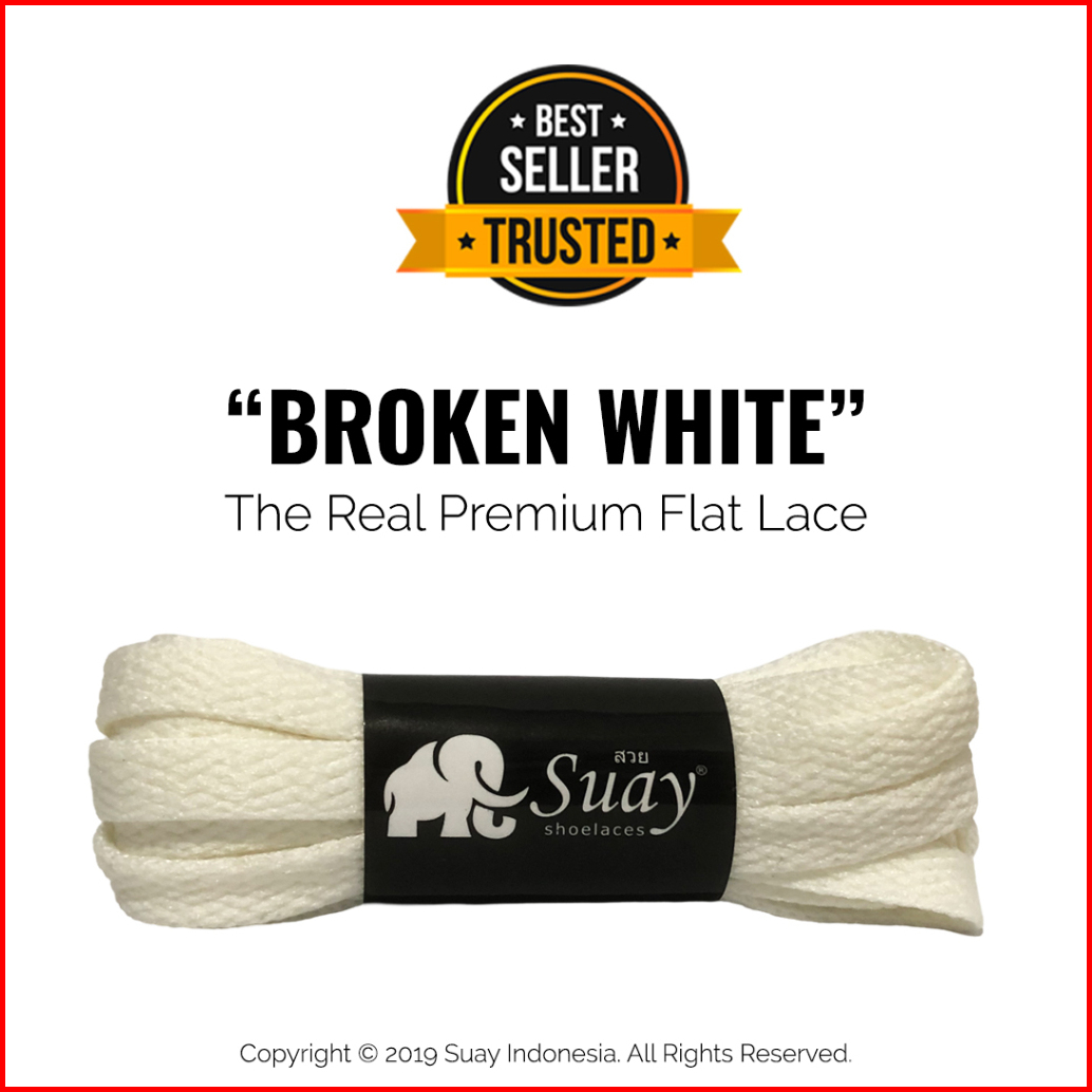 Suay Tali Sepatu Gepeng Pipih Warna Putih Susu - Panjang 110cm Lebar 8mm - Flat White Milk