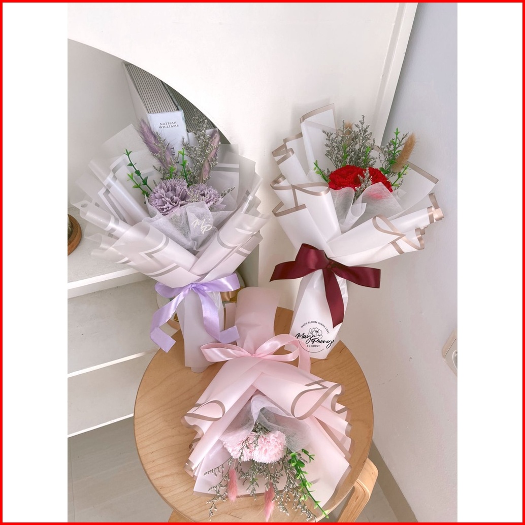 Twin Chrysan Carnation Soap Flower Bouquet - Buket Bunga Sabun 2 Tangkai Hadiah Valentine Kado Wisuda Sidang Birthday