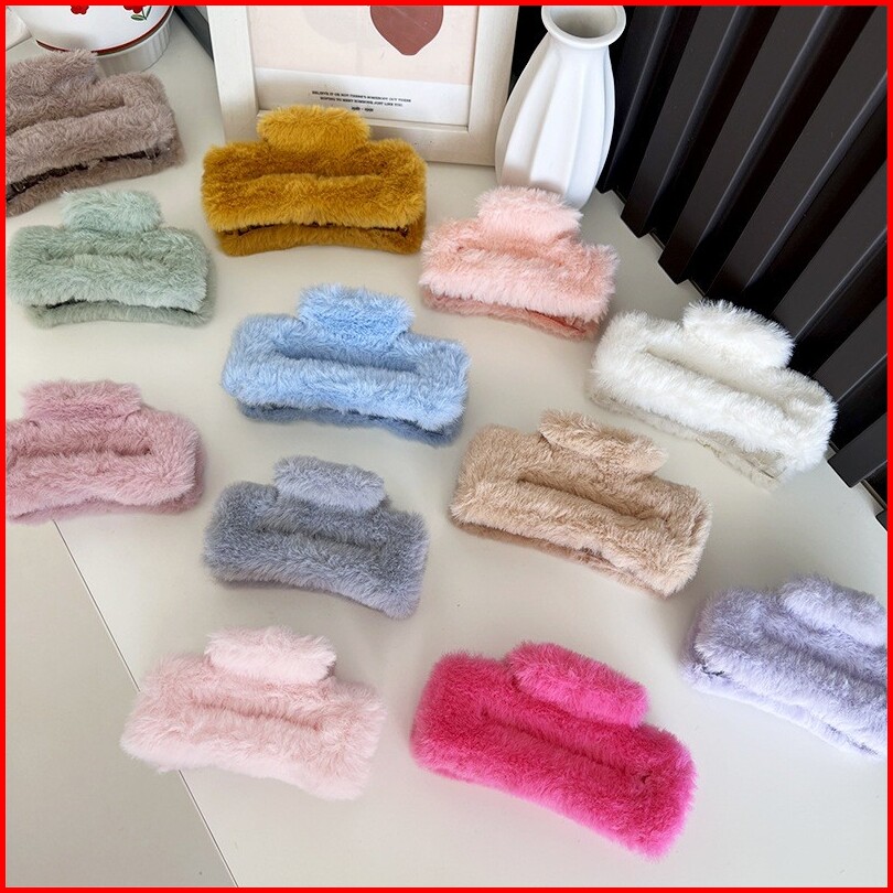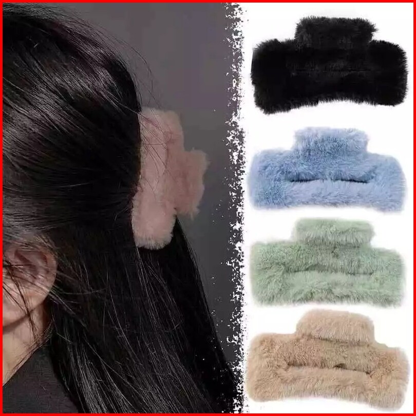 Hc Jedai Rambut Bulu Premium Model Kotak Persegi Korean Style Jepit Rambut Wanita Bulu Halus Jepit Rambut Polos