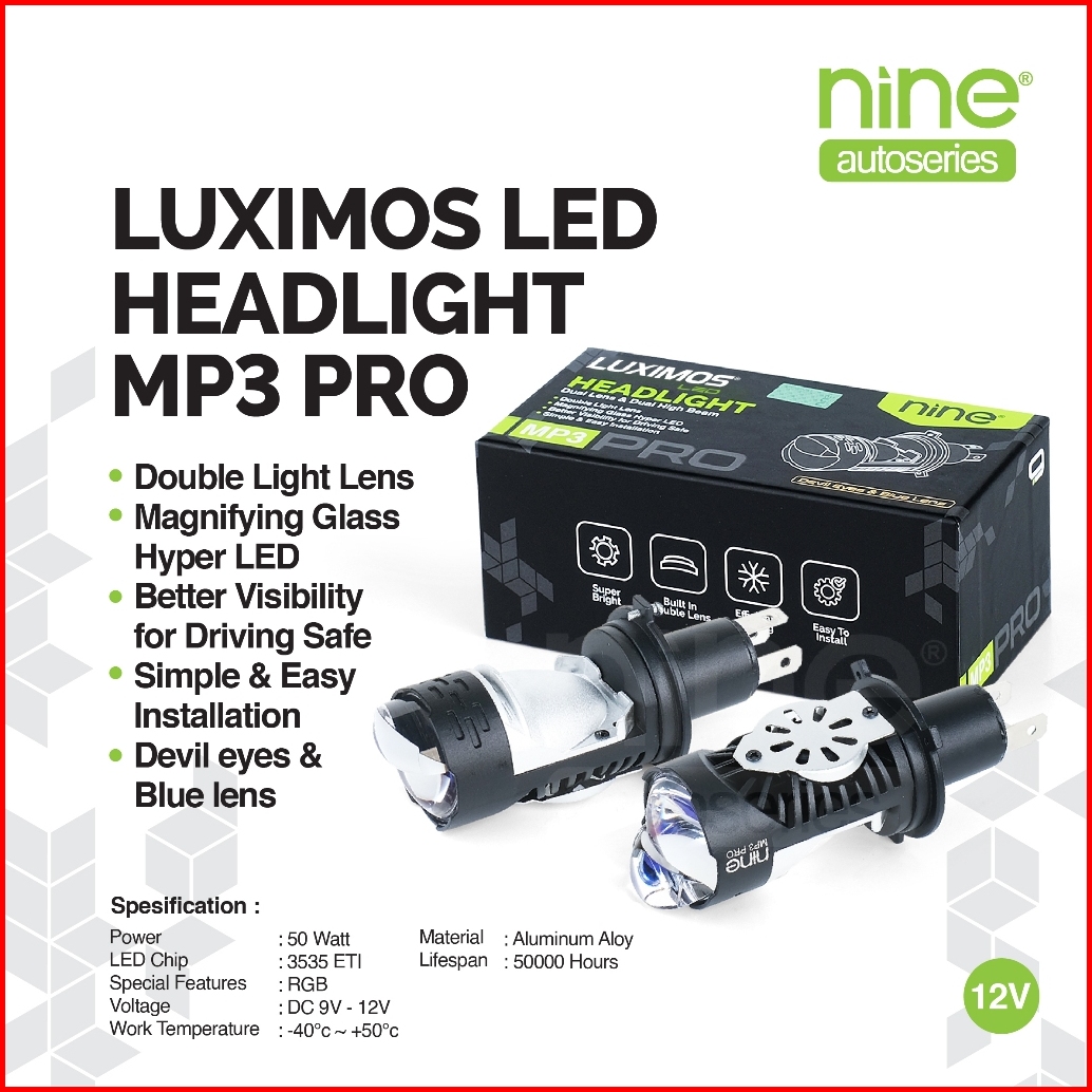 Luximos Lampu Mini Biled Projie 50w H4 Pnp Super Terang Projector Devil Mp3 Pro - Nine Autoseries