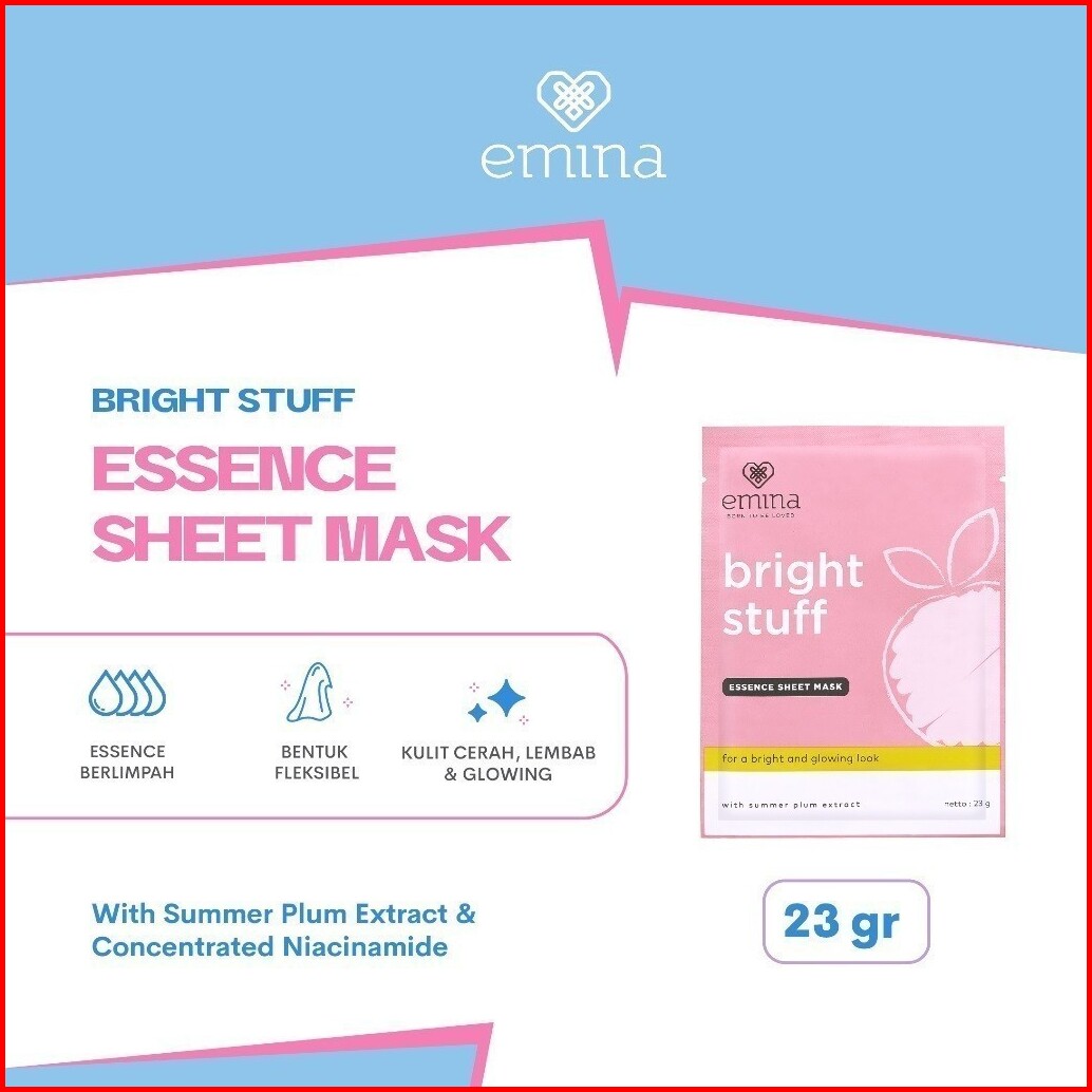 Emina Bright Stuff Essence Sheet Mask 23gr - 1 Sachet - Masker Wajah Tnt Beauty Shop