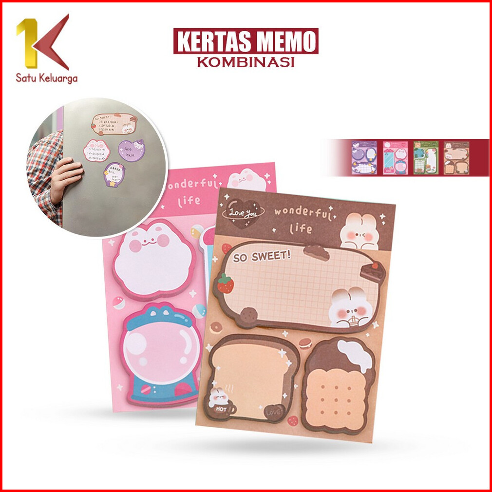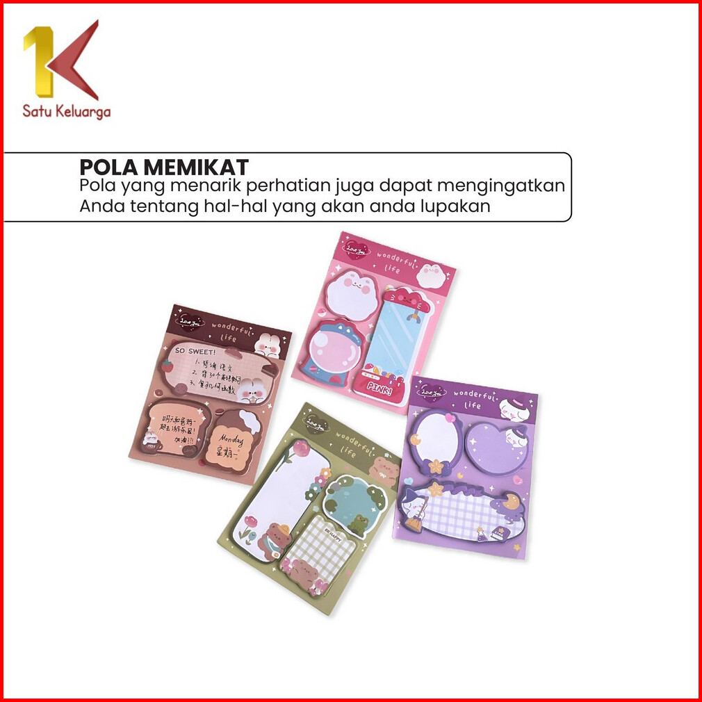 Satu Keluarga Sticky Note 3 In 1 Motif Kartun Bear Cat A89 Pembatas Buku 60 Lembar Kertas Memo Kombinasi Pola Hewan Temp